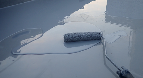シートの接続部分から水が入ったり、塗料が剥がれたりするのを防ぐため、トップコートを塗って仕上げを行います。